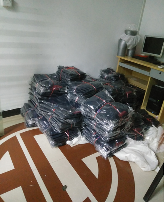快裕達是我們佳莉工作服的新客戶,剛訂購了一批工作服。說起佳莉與快裕達之間,還真有點淵源:佳莉的劉總與快裕達的陳總是單仁咨詢培訓時的同學,之前就有過交往,快裕達要做衣服當然要找的就是佳莉。這不,快裕達要參加一個重要的展會,就找到我們訂購了200套夾克工程服。本來這次工程服制作開始都還順利,但是因為刺繡的圖案的一點點延誤,差點誤了快裕達的展會??煸__的展會是2016年4月16日在上海召開,參會人員須在2016年4月15日到達上海,因此我們給快裕達做的衣服須在2016年4月14日交貨。由于刺繡圖案延誤,使得快裕達工作服的生產停了兩天,本來在4月13日可交貨,這樣一來就會耽誤展會。雖然工期耽誤的責任不在我們身上,但我們還得想辦法解決問題??!怎么辦?辦法只有一個,那就是要我們的工人師傅加班,對我們佳莉就意味著要多付加班費,一定要趕在4月14日完工。在4月14日晚上10點,衣服終于做好了,馬上裝車,上高速,驅車60公里,在11點時我們把工作服送到了快裕達在東莞塘廈的工廠。