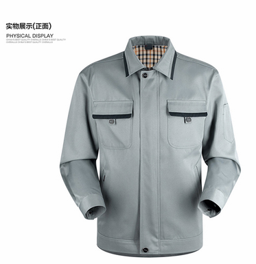 JL-QD204東莞廠服以淺灰色為主調,采用立體翻領和時尚插袋來襯托時裝者的時尚動感。采用夾克式的下擺,簡約平整的設計使您更加干練