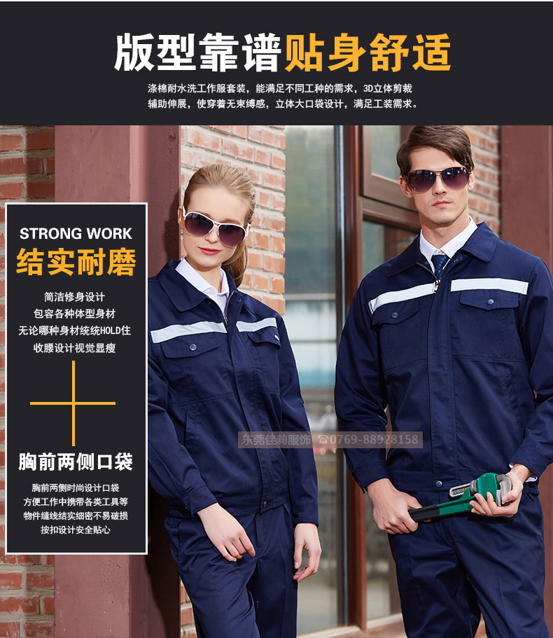 高品質全新形象,經典設計,立體裁剪,時尚翻領,質感有型。走線細致,優(yōu)質暗扣,實用性強。胸前口袋撞色拼接,雙明線縫制既時尚又耐用,即使在下班之余也可以穿。