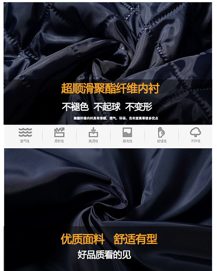 采用超順滑聚酯纖維內(nèi)襯,內(nèi)膽加棉,不起球,不褪色,不變形。防靜電內(nèi)襯,為冬天起到更實用的穿著